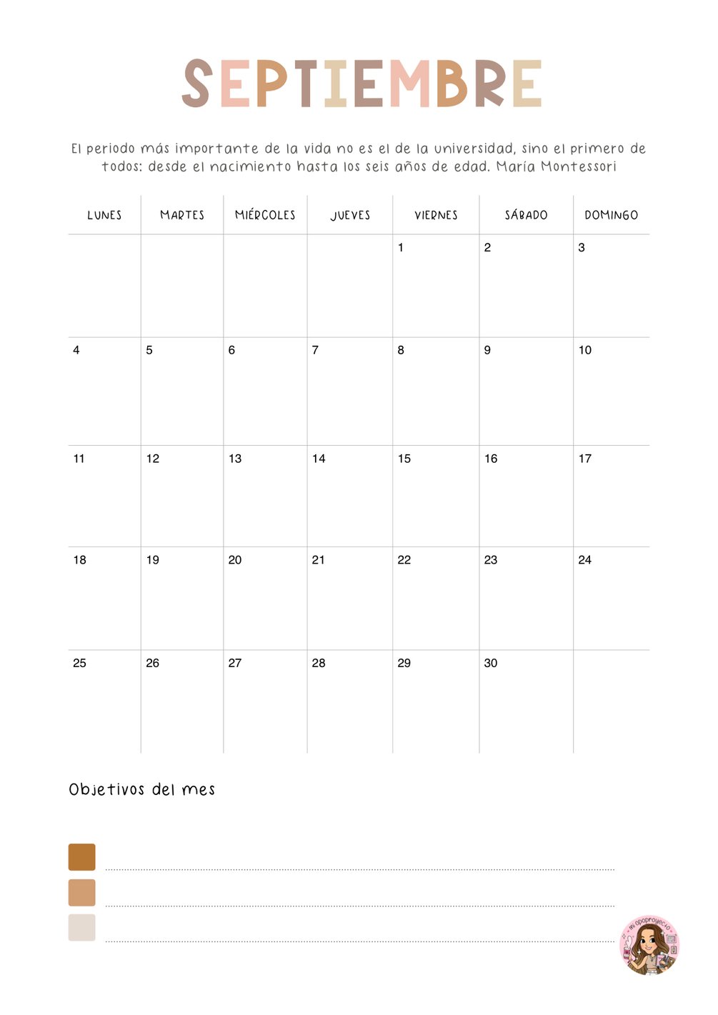 CADA MES LLEVA UNA CITA Y UN ESPACIO PARA TUS OBJETIVOS